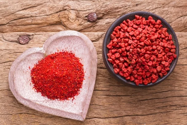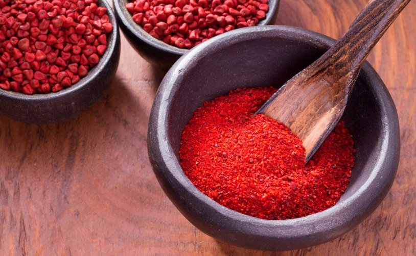 Utilizado como colorante para una variedad de platos en la gastronomía, el achiote se encuentra en la pulpa que cubre la semillas del achiote.