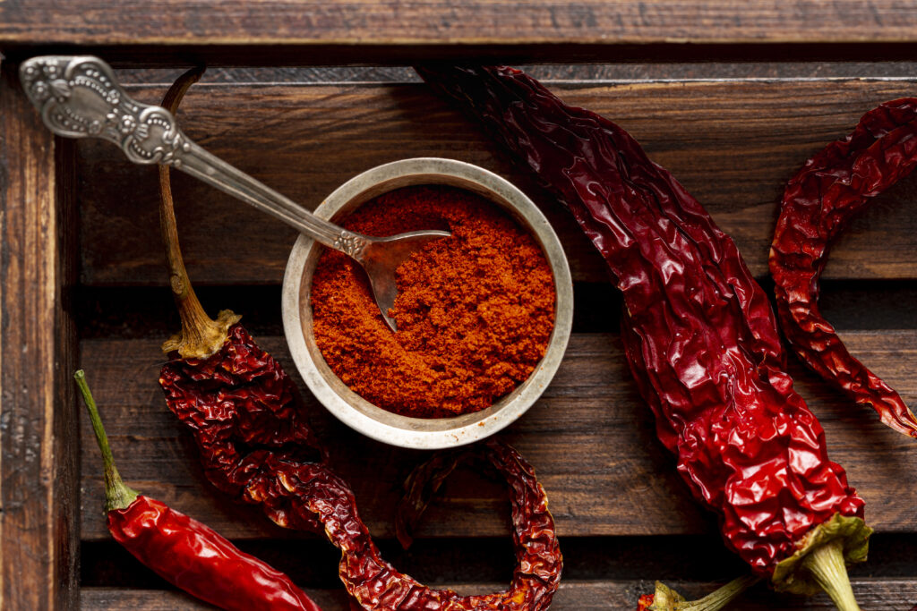 Frutos deshidratados y triturados obtenidos a partir de pimientos, los cuales son molidos y tamizados. Se suelo usar para aportar un toque picante a infinidad de recetas.